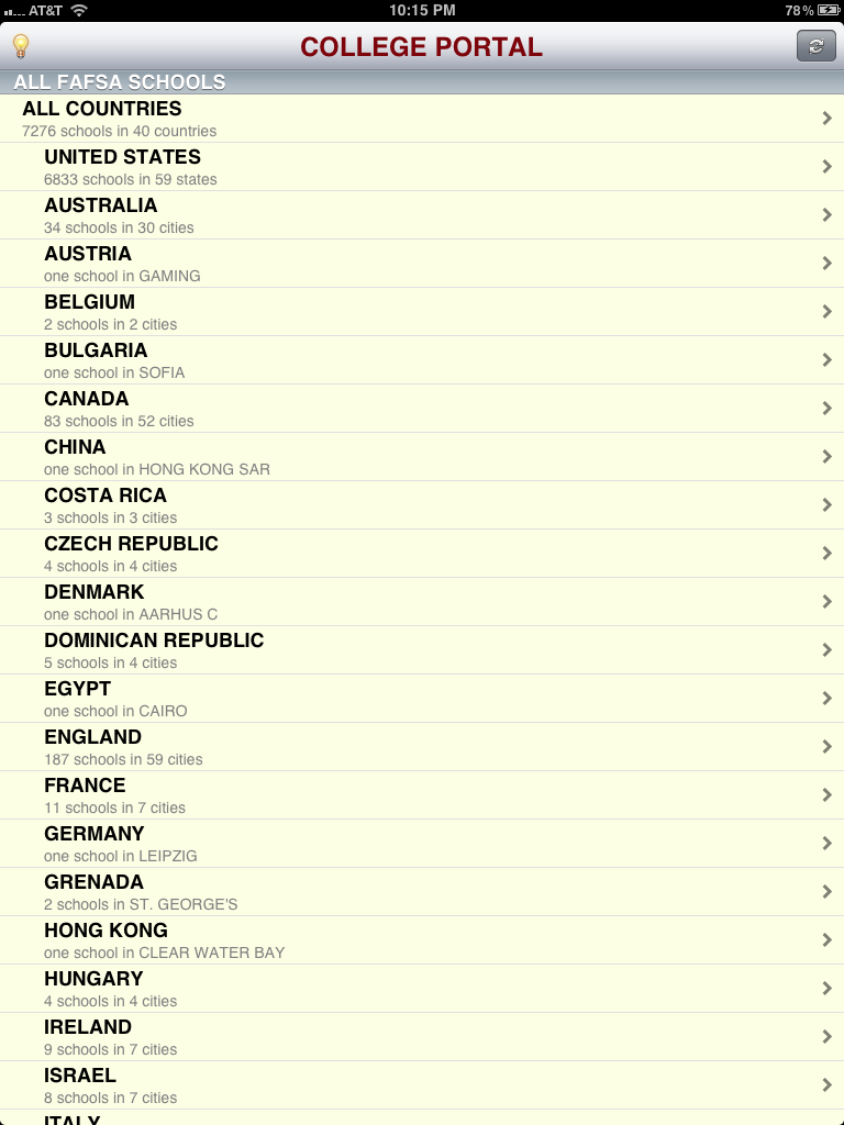 Browse and search through latest FAFSA recognized 7276 colleges, graduate schools, secondary education institutions in 40 countries including US, Canada, England, Australia…