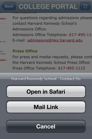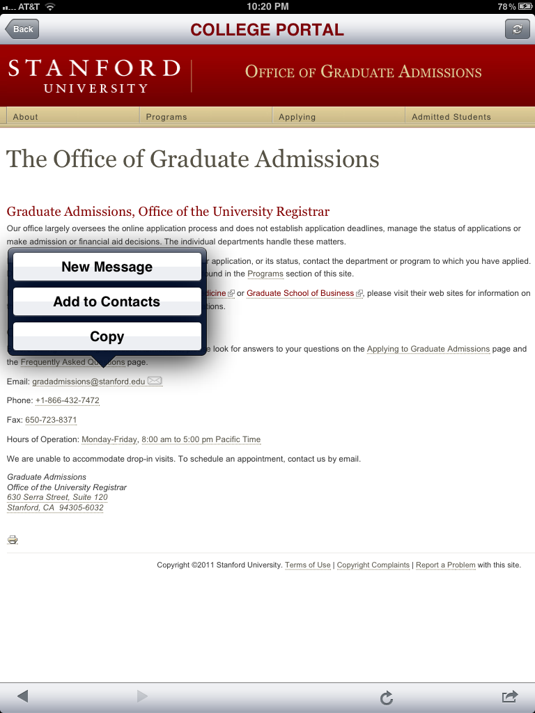 Once you find the admission web page, you send email for catalog or brochures, even ask questions. Add contact to your own contacts!
