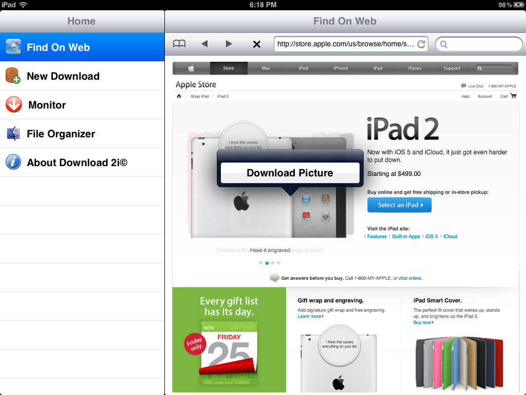 太爱下载© (Download 2i) 是一款通用于iPad, iPhone和iPod Touch的下载应用。它在iPad,iPhone/iPod Touch上有各优化设计的用户界面。您买一次,就可同时运行您所有的iPad,iPhone/iPod Touch上,并给您最佳的用户体验。太爱下载©帮您从网上下载文档,图片,音乐及其它媒体。它有类似于Mac及PC的用户界面,提供分门别类的文件夹,将使您使用起来感觉亲切自然。