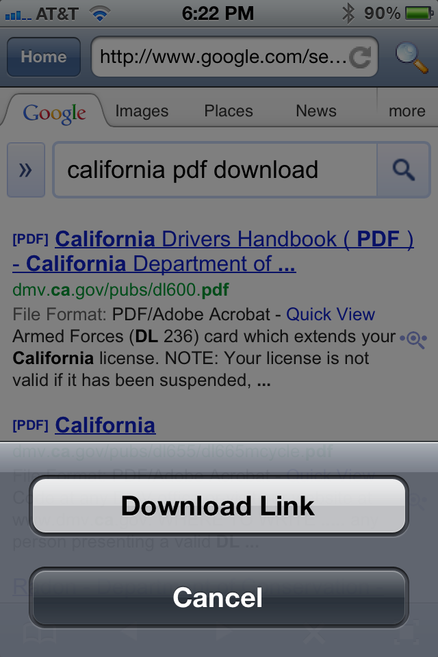 Press and Hold a picture or link on a web page, the call-out menu will pop up to ask for your action: 按住一个图片或网页链接,调出菜单,会弹出要求您的行动: